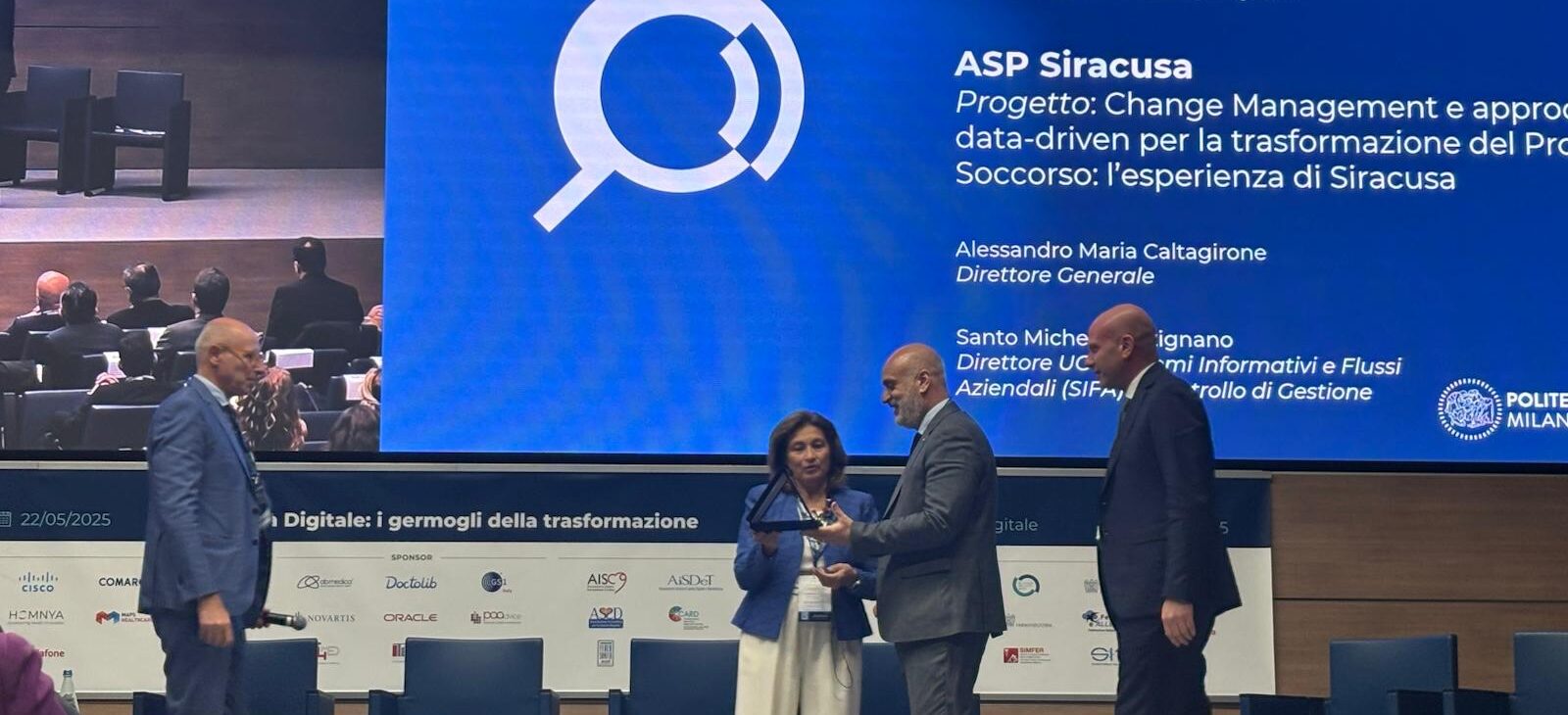 L’ASP di Siracusa è stata insignita del prestigioso Premio “Innovazione Digitale in Sanità 2025” indetto dagli Osservatori Digital Innovation della School of Management del Politecnico di Milano, con il progetto “Change Management e approccio data-driven per la trasformazione del Pronto Soccorso: l’esperienza di Siracusa”.