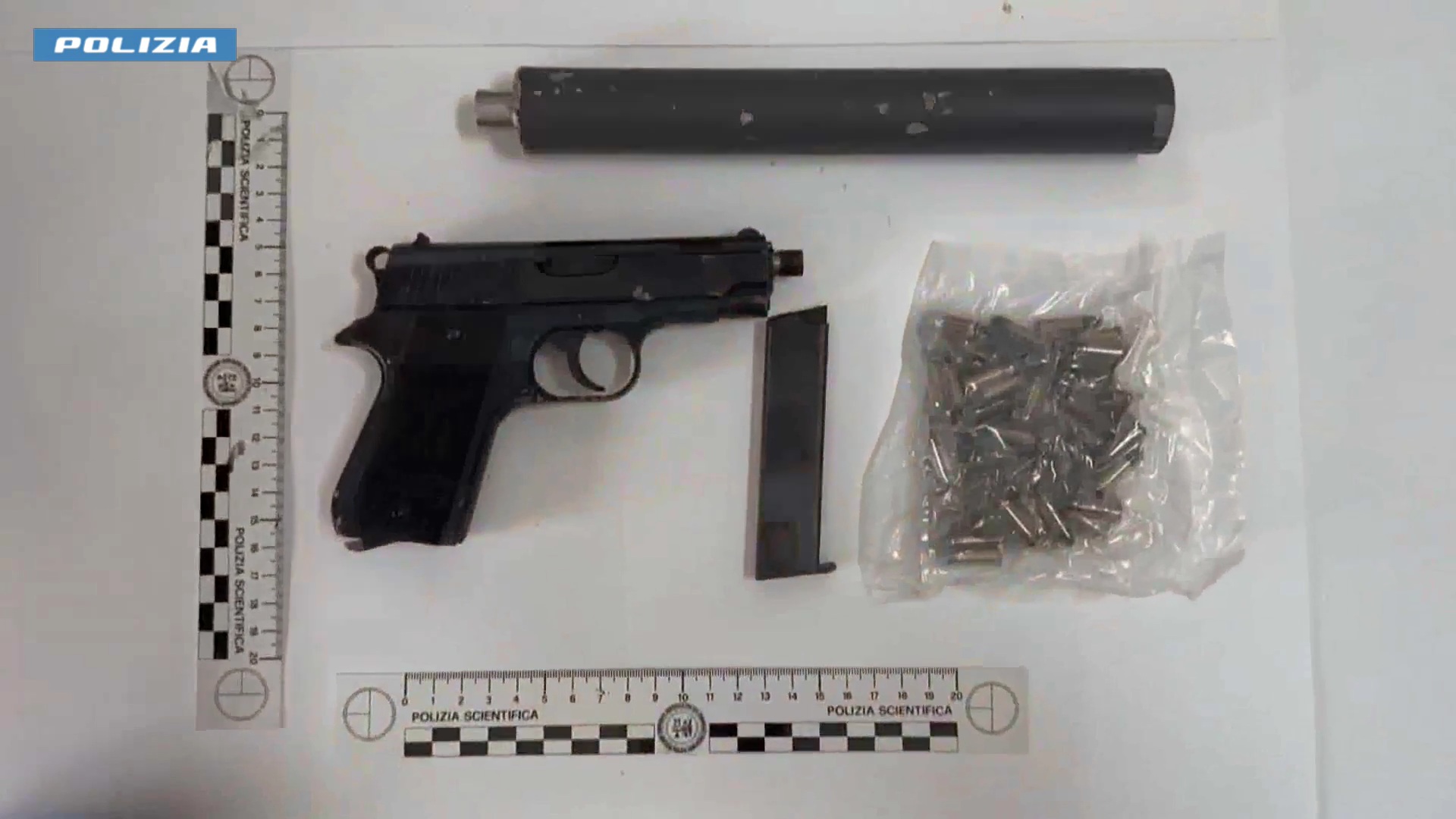 In specie, a seguito di una perquisizione domiciliare, operata dagli investigatori della Squadra Mobile, coadiuvati da unità cinofile di Catania, gli agenti hanno rinvenuto e sequestrato le due armi, due silenziatori compatibili con queste ultime e relativo munizionamento, all’interno di una nicchia ricavata nel muro perimetrale dell’immobile, sito nella zona balneare di Siracusa.